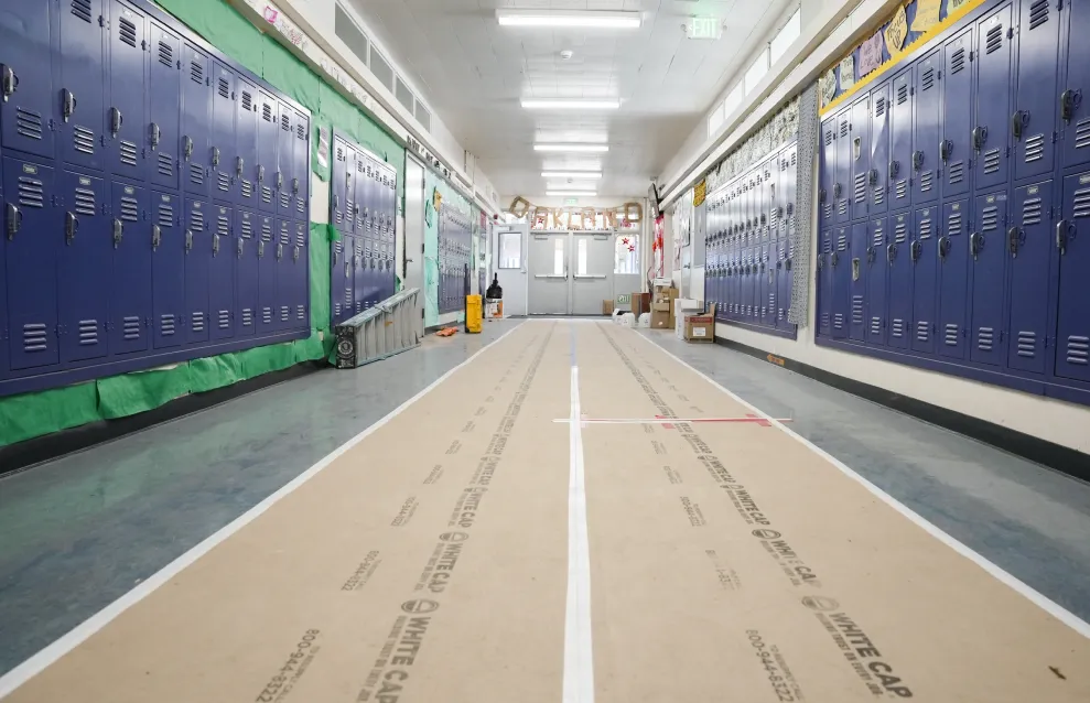 Mar Con is currently engaged in a comprehensive renovation project at West Oakland Middle School for the Oakland Unified School District (OUSD). This project involves the complete replacement of windows across two buildings, each standing 27 feet high. Our team is removing the existing aluminum curtain wall system and installing a new stud wall along with an aluminum window system on the east and west elevations of Buildings E and F. This upgrade not only enhances the aesthetics of the school but also improves energy efficiency and natural lighting.