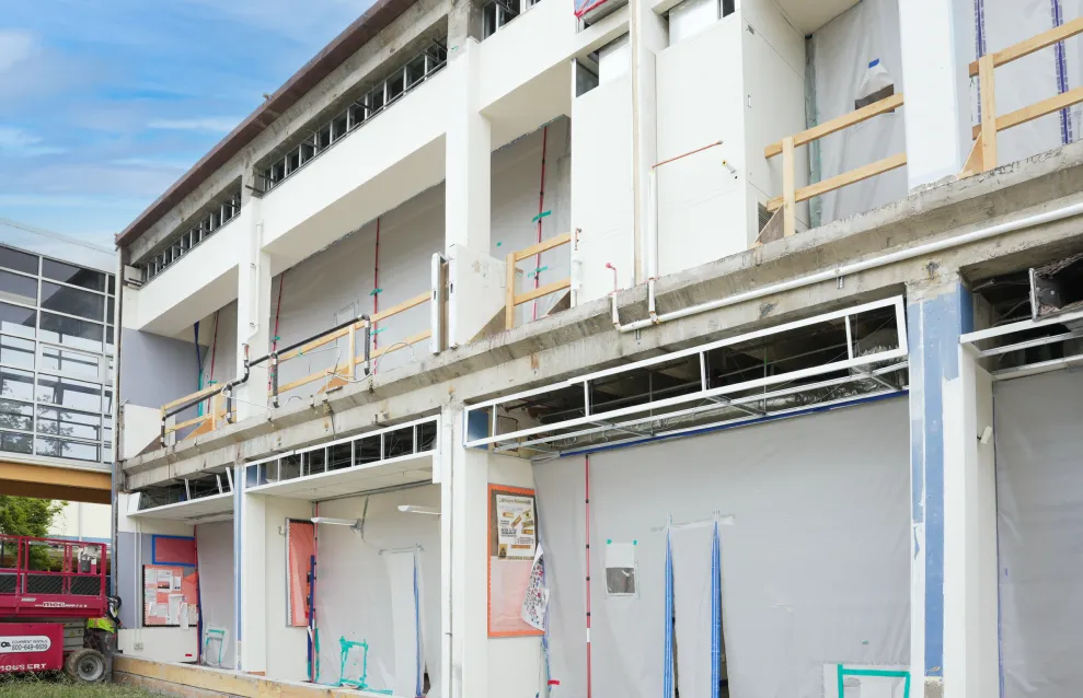 In addition to the window replacement, our work includes the installation of mechanical louvers, as well as updates to the plumbing, electrical, and data systems. We are also renovating restrooms and replacing doors to enhance functionality and accessibility throughout the campus. A key challenge of this project is maintaining normal school operations during construction, making careful coordination a critical element. Our team is committed to minimizing disruptions to daily activities, ensuring that students and staff can continue their routines smoothly while we enhance their learning environment.